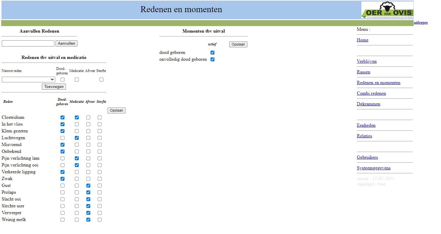 Op deze pagina kunt u zelf de redenen voor dood geboren, medicatie , afvoer en Sterfte toevoegen. Dit zijn de keuzelijstje die u kunt uploaden naar de reader. Deze zullen dan getoond worden in de betreffende taak.