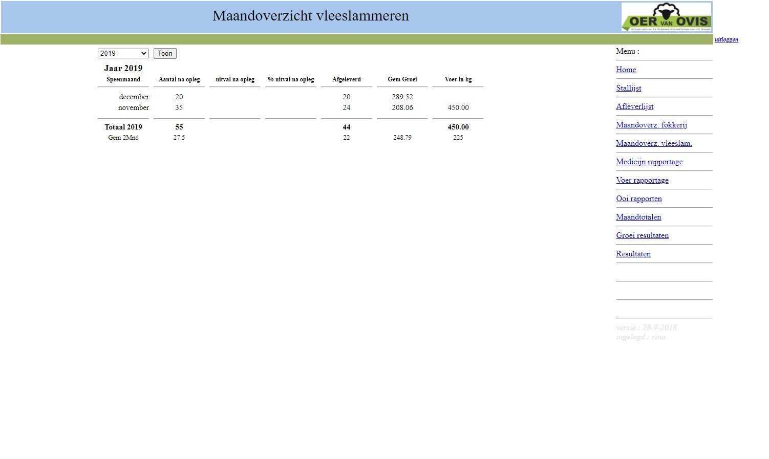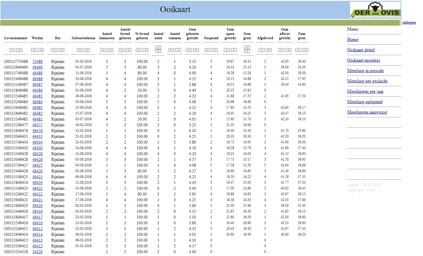Bij deze rapportage ziet u de ooikaart, met de totale en uitgesplitst op lammeren, met alle gegevens van de betreffende lammeren, bv, mits bijgehouden alle gewichten, geboortehulp. Deze gegevens kunt ook benaderen vanuit de link Schaap opzoeken