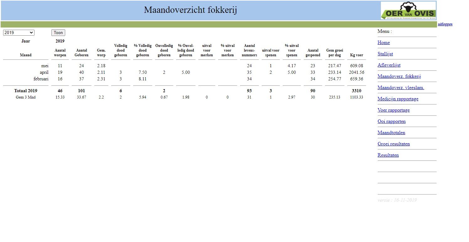 In één A4 het totale overzicht van de technische gegevens tot afleveren, mits deze zijn vastgelegd in de reader bij de taak Spenen met het gewicht en ook het gewicht wordt vastgelegd bij afleveren. Als ook het voer wordt vastgelegd, dan ziet u ook dit terug overzicht.